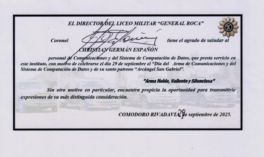 29Sep, 2025 Día del Arma de Comunicaciones y del Servicio de Sistema de Computación de Datos y su santo patrono “Arcángel San Gabriel”
