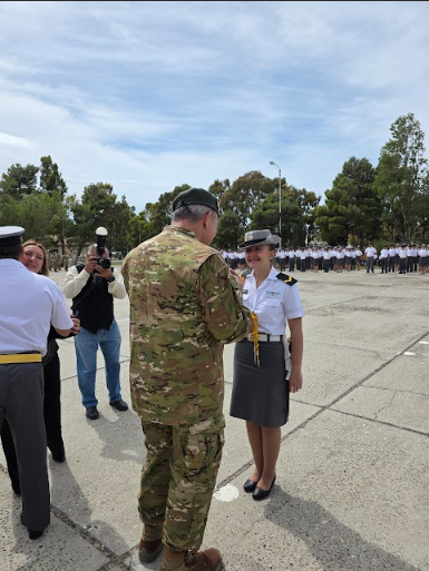 Seguidamente, se procedió al ascenso a dragoneante de la cadete de 5.º año Sofía Micaela Valenzuela, quien fue designada abanderada del Instituto para el ciclo lectivo 2026. Este reconocimiento destacó su dedicación y compromiso con los valores que distinguen a la institución.